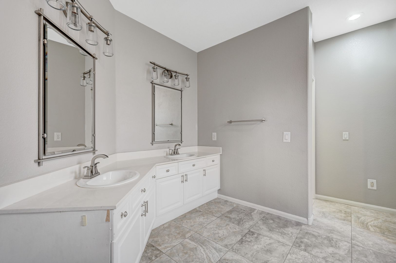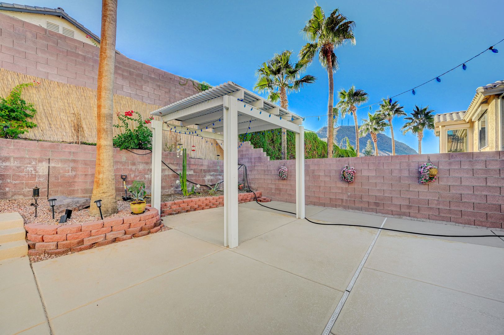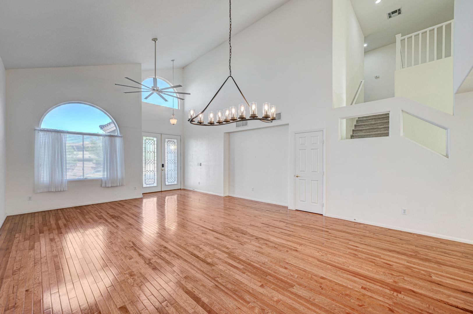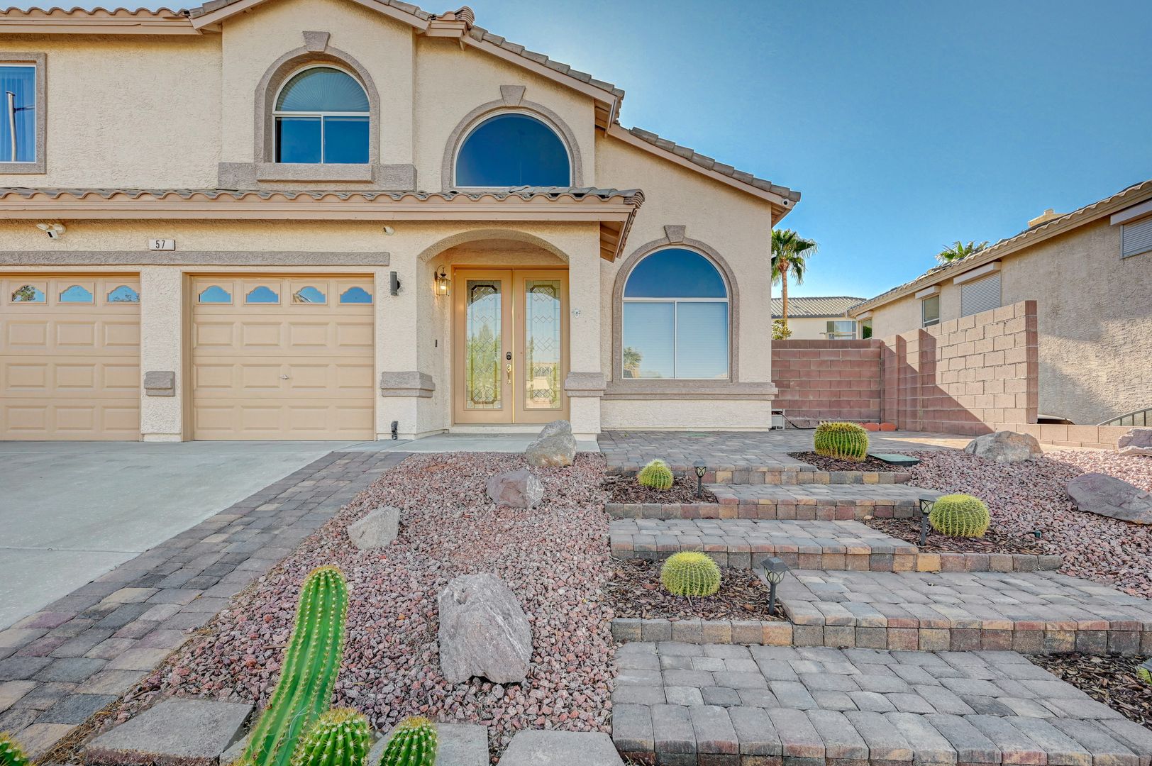 This stunning 4 bedroom, 3.5 bathroom home in the guard-gated community of Palm Hills is the perfect retreat for you and your family. With 3,151sqft of living space and beautiful curb appeal, this home is sure to impress. As you enter the front door, you'll be greeted by mesmerizing high ceilings and tons of natural light that highlights the actual HARDWOOD floors throughout the home. The fully equipped kitchen boasts stainless steel appliances, granite countertops, tons of cabinetry, and a pantry, making it the perfect space for cooking and entertaining. Step outside to your entertainer's paradise and take a dip in the beautiful salt-water pool. Artificial turf installed on both sides of the home, tons of palms, shrubs & 2 fruit-producing Fig trees, create a serene outdoor living space perfect for relaxing with family and friends. This home offers 2 primary bedroom suites, with one conveniently located downstairs, which is fully handicap accessible with a roll-in shower, grab bars, and an enlarged toilet. The primary bedroom suite upstairs features double sinks, a separate tub/shower, and a custom walk-in closet, providing a luxurious and private retreat. The 3-car garage and RV parking are an added bonus that will provide ample space for all of your toys. This home is truly a rare find in a sought-after community
